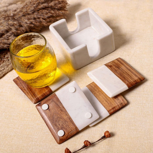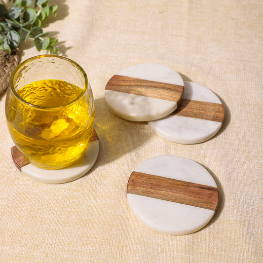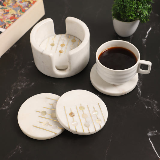 Marble & Mother-of-Pearl Coasters with Brass Inlay