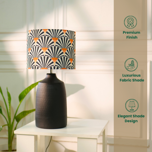 Black Metal Table Lamp with Orange Zebra Fabric Shade – RIO Collection