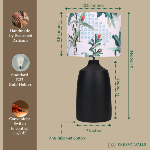 Black Metal Table Lamp, Green Tropical Fabric Shade - RIO Collection