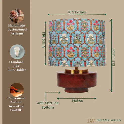 Mango Wood Table Lamp, Teal Garlands Fabric Shade - RIO Collection