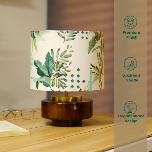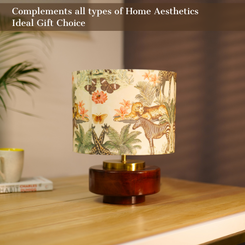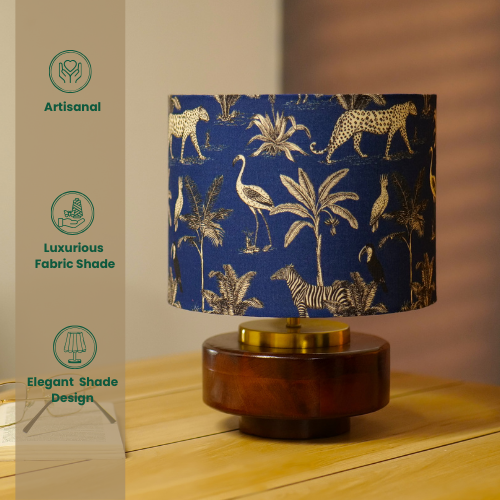 Mango Wood Table Lamps, Jungle Tales Fabric Shade - Rio Collection