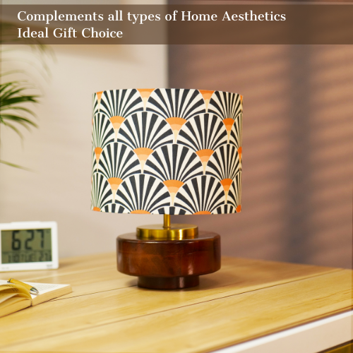 Mango Wood Table Lamp, Orange Zebra Fabric Shade - RIO Collection