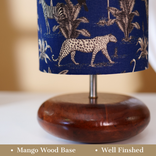 Mango Wood Table Lamp, Savanna Blues Fabric Shade - RIO Collection
