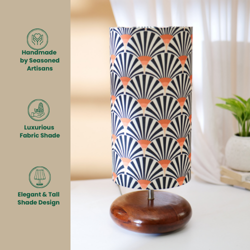 Mango Wood Table Lamp, Orange Zebra Fabric Shade - RIO Collection