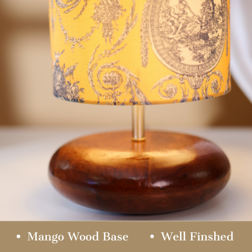 Mango Wood Table Lamp, Yellow Victorian Fabric Shade - RIO Collection