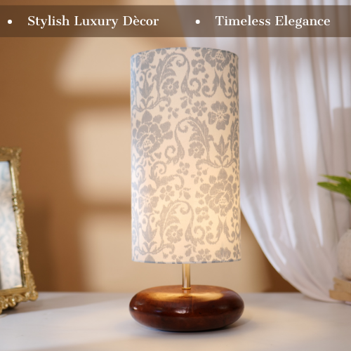 Mango Wood Table Lamp, English Country Fabric Shade - RIO Collection